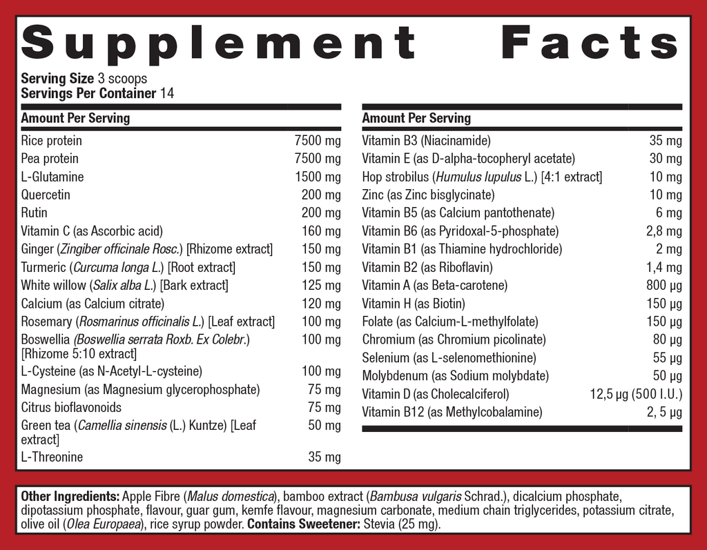 UltraInflamX™ offers functional nutrition with a blend of rice and pea protein, alongside carefully selected vitamins, minerals and herbs with antiinflammatory properties that support the reduction of inflammation, and the promotion of healthy gut function. It contains a powerful blend of antioxidants, which protect cells from oxidative damage and selected herbs that contribute to healthy muscles and joints and are also protective and soothing to the digestive tract.