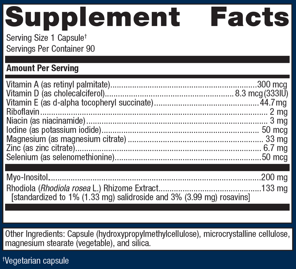 Thyrosol offers a multifaceted approach by providing nutritional support for healthy thyroid function along with additional support for stress related fatigue.