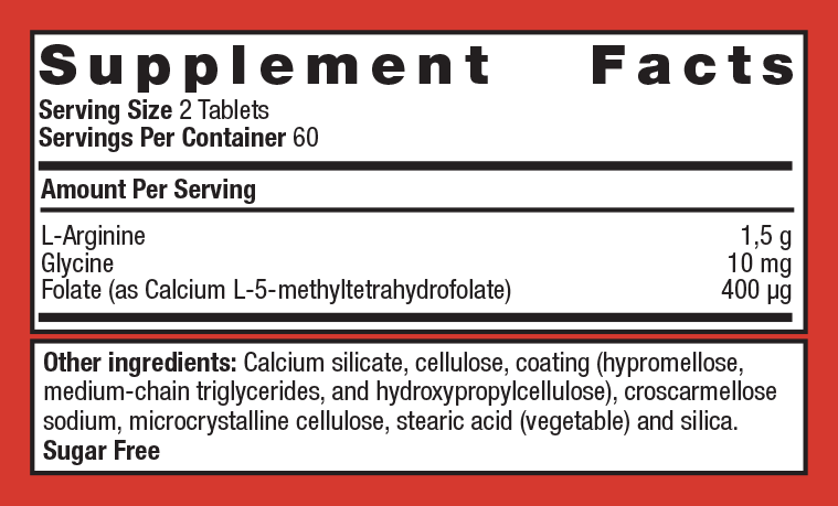 Arginine Plus™ delivers high quality L-arginine with calcium L-5-methyltetrahydrofolate to support healthy blood flow, homocysteine levels, and overall cardiovascular health. Providing L-5-methyltetrahydrofolate helps to ensure improved folate nutrition, even in those with genetic variations in folate metabolism.
